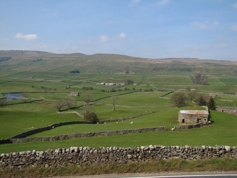 Der Yorkshire Dales National Park umfasst Tausende von Quadratmeilen. Die Flüsse aus den Pennines, die zum Osten Richtung Nordsee abfliessen, bilden circa 30 Täler. Moorland wechselt mit Wiesen, Weiden, Wasserfällen und Höhlen. Das typische Bild zeigt die Wiesen mit den typischen Drystonewalls. Diese sieht man vor allem im ländlichen Bereich. Sie werden auf über 5’000 Meilen lang in den Yorkshire Dales geschätzt. Einige von ihnen sind über 600 Jahre alt. Sie wurden errichtet, um Wölfe daran zu hindern, die Schafherden anzugreifen. Drystonewalls werden aus Steinen ohne Hilfe von Mörtel geschichtet und halten durch das richtige Schichten mindestens 100 Jahre.