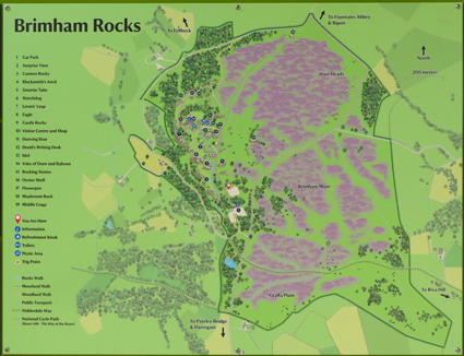 Über Tausende von Jahren entstand ein Naturpark mit zu bekletternden Steinformationen. Die Steine sind ein natürlicher Spielplatz mit einem atemberaubenden Ausblick über das Nidderdale. Zwischen den Felsen wachsen Bäume und kleinere Pflanzen.