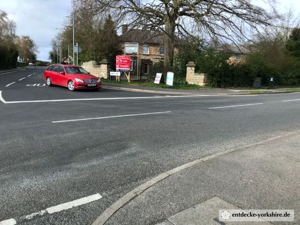 Die Landstrasse ist eng, ist auch nur eine B-Road, der Strassenbelag auch nicht der beste. Als nächstes ein Kreisverkehr. Nicht ganz so schlimm wie erwartet. Ist einer mit Mittelinsel. Die Spur führt automatisch nach links. Ortseingang, das erste Grundstück ist von einer Mauer umgeben, die bis an die Strasse reicht. Reicht der Platz in der Spur überhaupt? Ich traue mich kaum weiter nach links zu fahren. Ein Lastwagen kommt plötzlich mit hoher Geschwindigkeit entgegen. Erschreckt ziehe ich das Lenkrad nach links, komme zwischen Mauer und LKW gerade hindurch. Das reicht für heute. Fahrerwechsel.